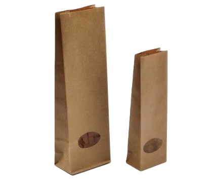 Papirnata vrečka z elipsastim oknom. Primerne za čaje, piškote, moko, testenine.